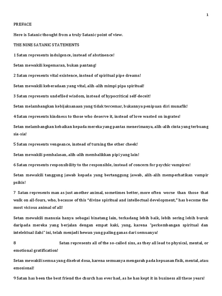 Satanic Bible Pdf Bahasa Indonesia. The satanic bible bahasa indonesia pdf. I boned up on Satanism discussed its history and rationale with LaVey and attended some midnight rituals.
